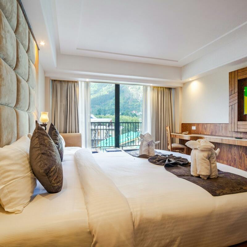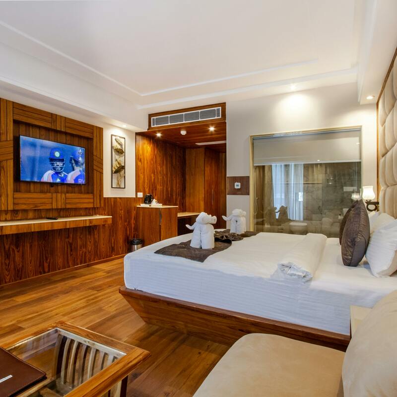 Experimenta la elegancia y el lujo en nuestra Suite de Lujo. Con vista panorámica de la ciudad, jacuzzi privado, y cama King Size para una experiencia inolvidable. Precio: $150 por noche.